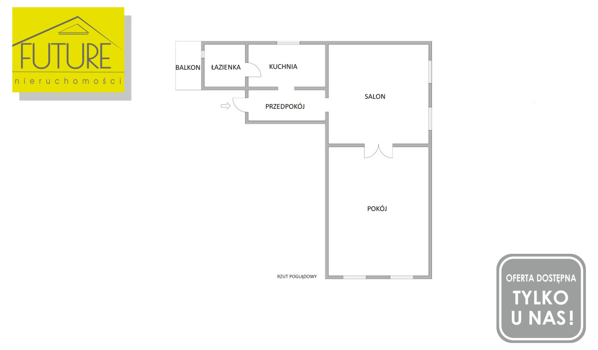 Mieszkanie składa się z dwóch przestronnych pokoi, które można z łatwością przebudować i uzyskać dodatkowy, trzeci pokój.