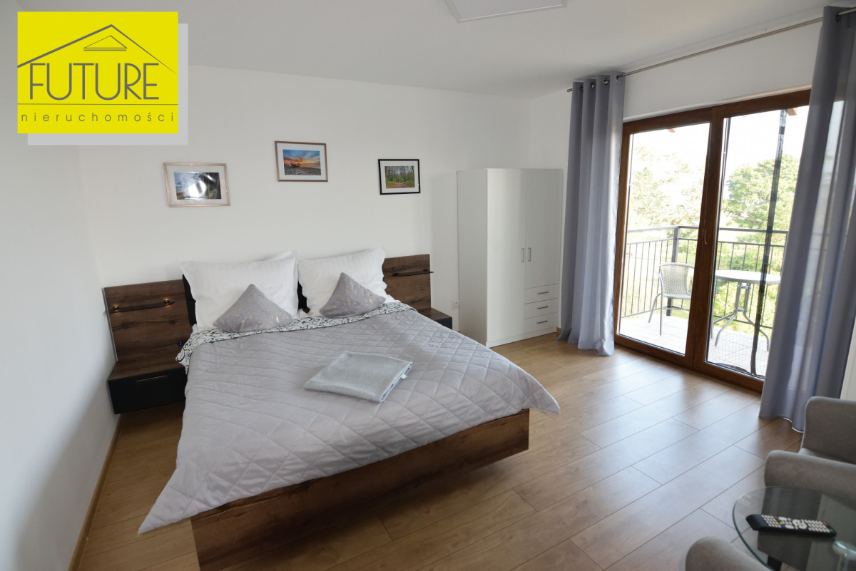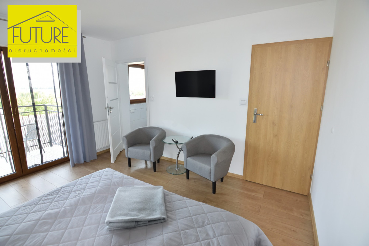 Na pierwszym piętrze są 2 pokoje z łazienkami , każdy pokój ma balkon .Pokoje są przystosowane pod wynajem, 1 mieszkanie dwu pokojowe z łazienką i kuchnią pow.35m2 z pełnym umeblowaniem i wyposażeniem.